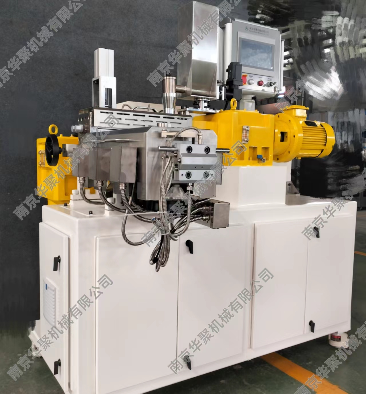 南京華聚機(jī)械有限公司致力于同向平行雙螺桿擠出機(jī)及連續(xù)密煉機(jī)的研發(fā)制造,在塑料改性、擠出發(fā)泡、高填充技術(shù)等相關(guān)領(lǐng)域擁有核心的技術(shù)和經(jīng)驗(yàn)。關(guān)鍵零部件如:連續(xù)密煉轉(zhuǎn)子及腔體、高扭矩齒輪箱、側(cè)向加料裝置、特殊工藝加工段等等均為自主研發(fā)。作為給客戶(hù)提供全套專(zhuān)業(yè)解決方案的“智造”商,華聚能為客戶(hù)提供以連續(xù)密煉和雙螺桿擠出應(yīng)用為核心,結(jié)合高效能單螺桿各類(lèi)擠出生產(chǎn)線(xiàn)的智能型成套裝備以及相關(guān)的工藝與工程領(lǐng)域技術(shù)開(kāi)發(fā)、產(chǎn)品制造直至交鑰匙工程;